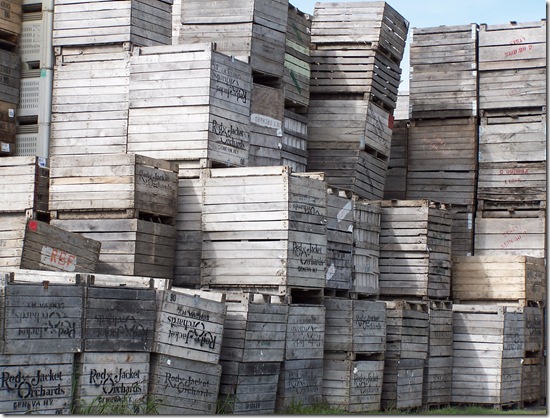 Lily - about the apple crates...these are actually bins which hold about 18 bushels of apples...which would make some serious bookshelves!!!!! Bookcases can be made using bushel bins which look quite similiar but are significantly smaller!!! My dad actually made us a treefort using apple bins (the big ones) once. Nice repurposing!