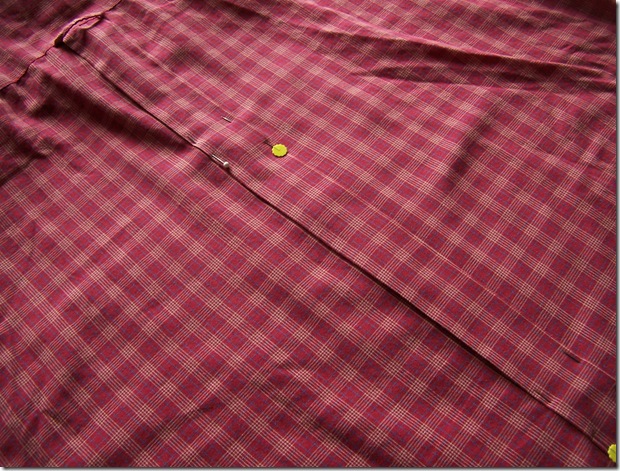 It just so happens that I have a bin filled with old work shirts worn in the orchards by my father in law that I plan to use in a bedspread for my boy. One could be spared for my girls “need” for another dress!!!